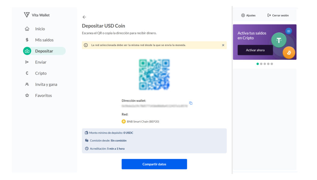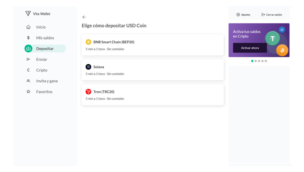 Guía rápida: Depositar USDC en tu cuenta de Vita Wallet rápido y seguro
