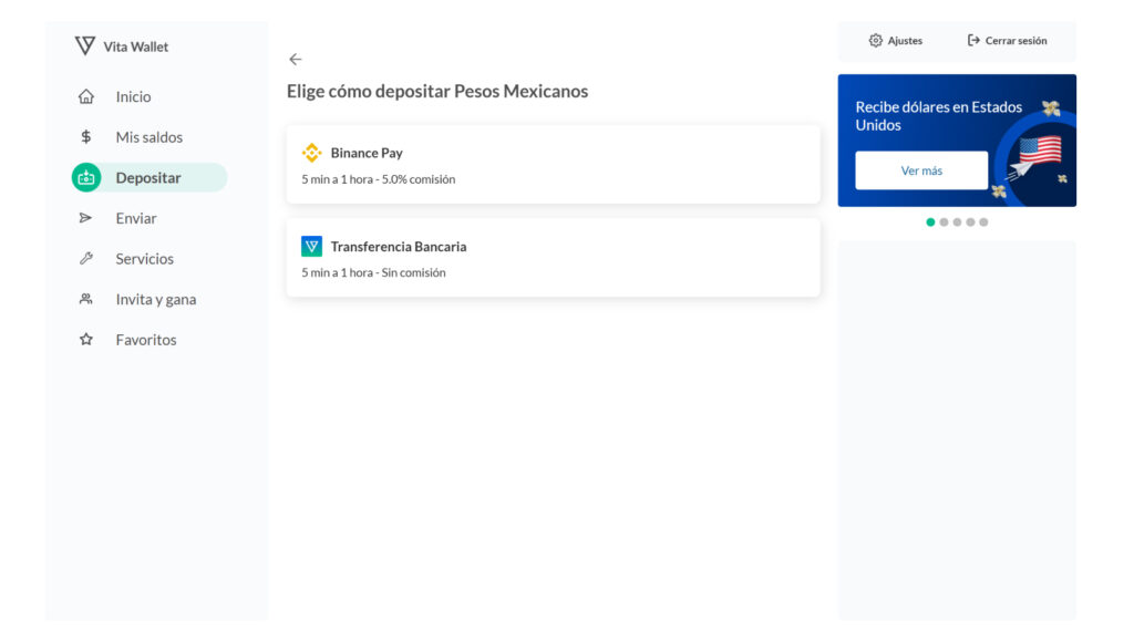 - Inicia sesión en Vita Wallet y dale clic al apartado ‘Depositar’.