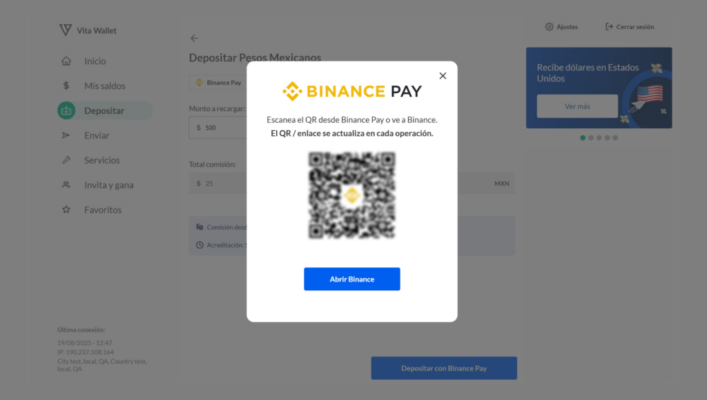 Muchos usuarios se preguntan si al recargar con Binance verán Bitcoin en su cuenta de Vita. La respuesta es no, y esa es precisamente la mayor ventaja. Vita Wallet actúa como una pasarela que conecta el mundo cripto con el sistema financiero tradicional. Al realizar la recarga: