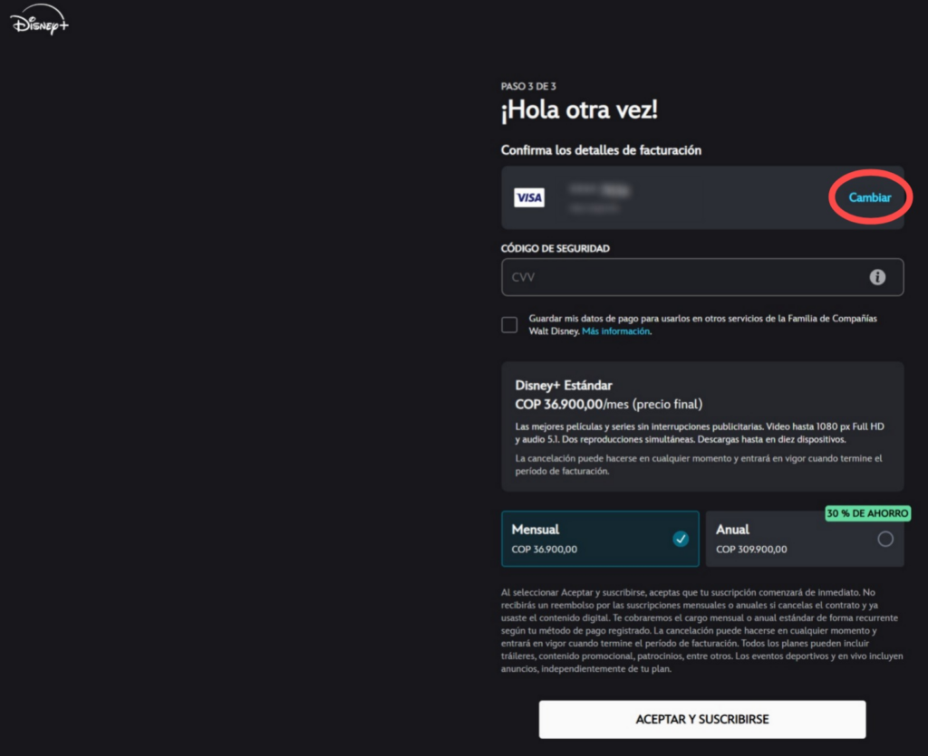 Paso 1 para pagar Disney+ con Vita Card