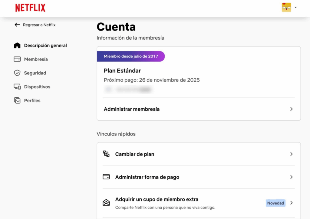 1️⃣ Inicia sesión en tu cuenta de Netflix y ve a ‘Cuenta‘.