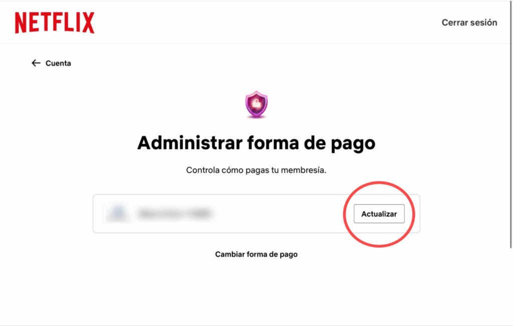 2️⃣ Selecciona ‘Administrar forma de pago’. Una vez ahí, dale clic a ‘Actualizar’ e ingresa los datos de tu Vita Card.